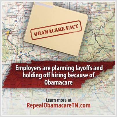 "Thx to Obamacare, rising premiums cause “layoffs” & “slowdown in hiring” Tell us how Obamacare has affected you at RepealObamacareTN.com."